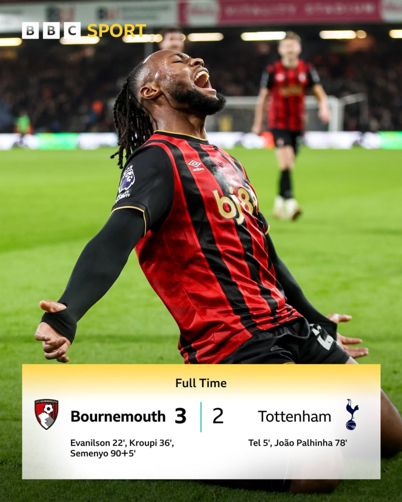 Antoine Semenyo wins it in stoppage in what could be his last game for Bournemouth.
