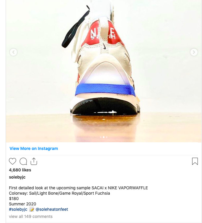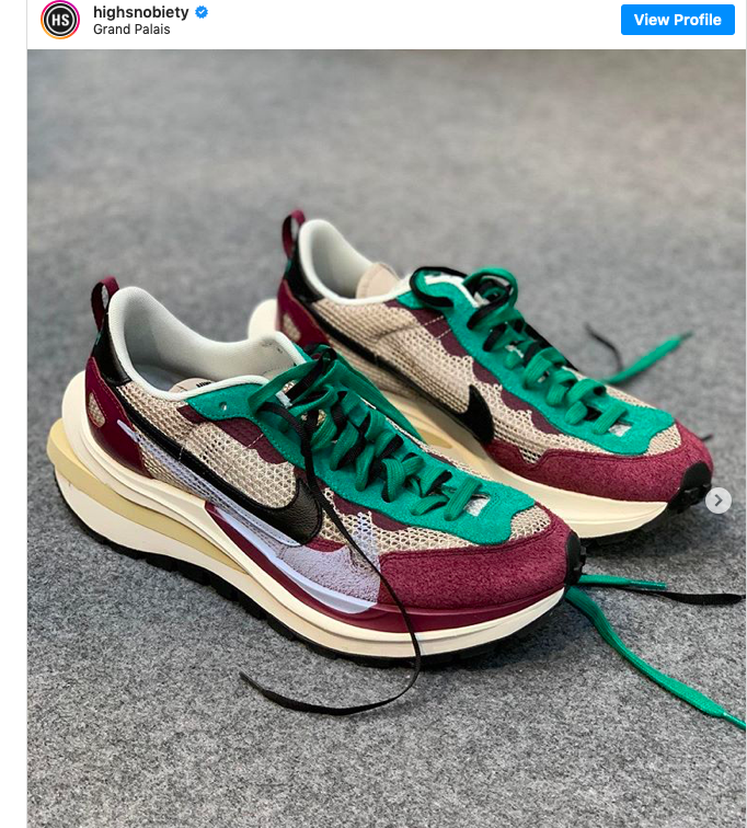 The sneaker was previously believed to be called the VaporPegasus, though sacai representatives confirmed to Highsnobiety that the collaboration will be officially known as the Vaporwaffle.