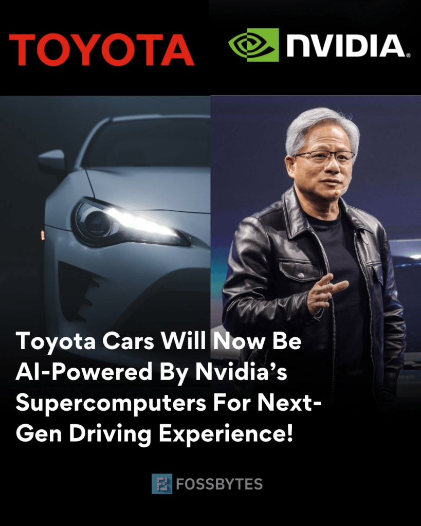 The partnership with Nvidia extends Toyota’s existing use of Nvidia’s cloud-based systems for developing autonomous vehicle technology, with Drive AGX being part of a broader end-to-end self-driving toolkit that also includes DGX and Omniverse platforms.