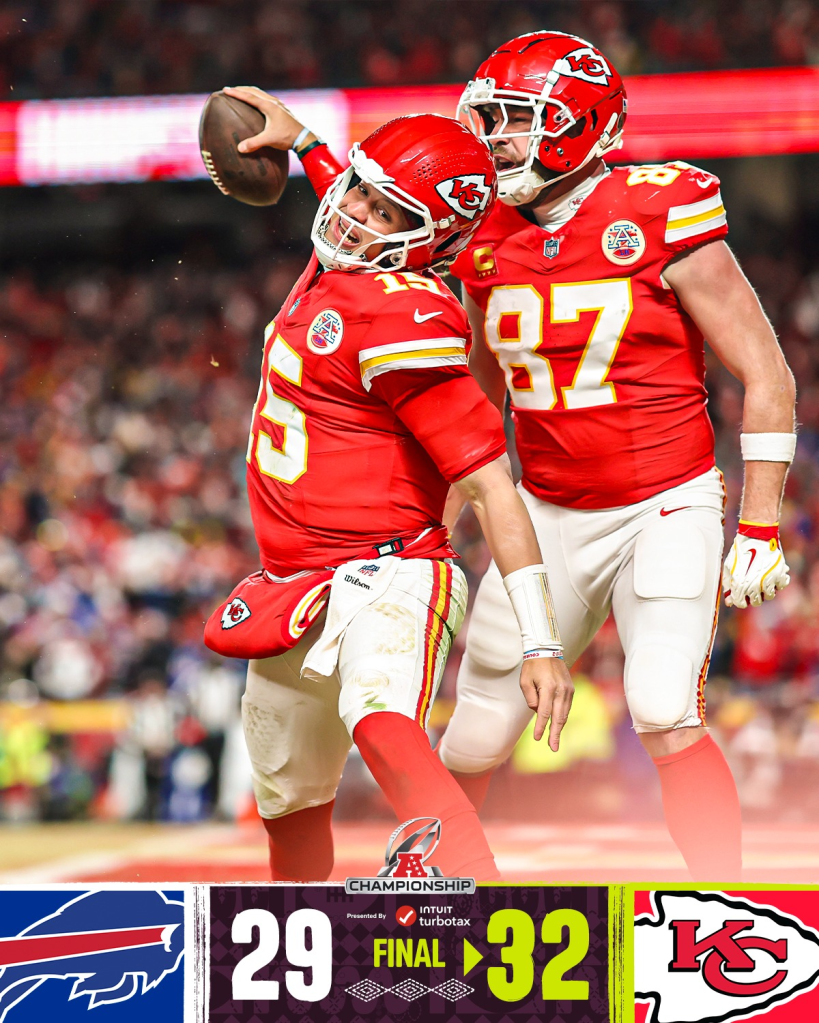 Super Bowl January 27, 2025 skinnypagesx FINAL: The Kansas City Chiefs are Super Bowl bound once again! source facebook Share this: Share on X (Opens in new window) X Share on Facebook (Opens in new window) Facebook Share on Pinterest (Opens in new window) Pinterest Like Loading... Related