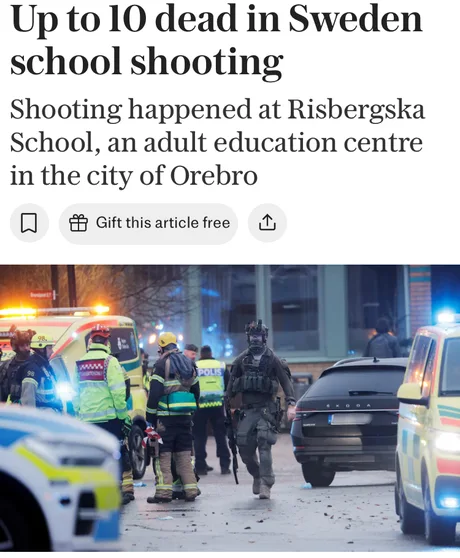 Sweden School Shooting February 4, 2025 skinnypagesx source 9gag Share this: Click to share on X (Opens in new window) X Click to share on Facebook (Opens in new window) Facebook Click to share on Pinterest (Opens in new window) Pinterest Like Loading... Related