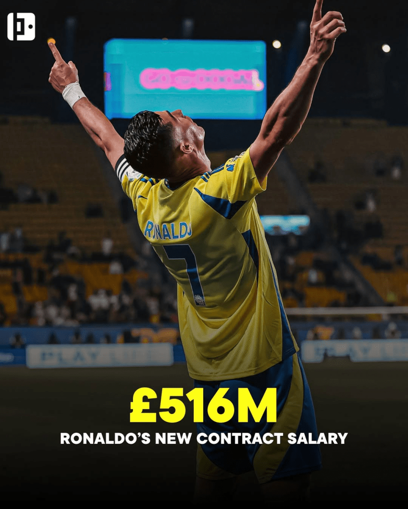 Ronaldo will therefore remain the highest-paid footballer for the foreseeable future, and he will earn over £ 516 million if he does spend another three years in Saudi Arabia.