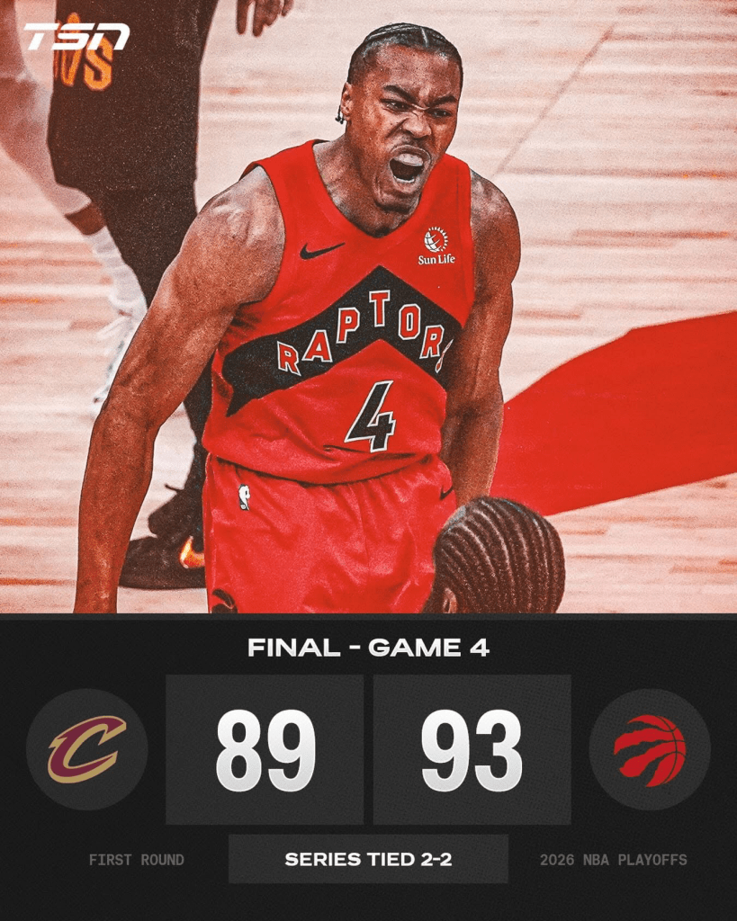 THE RAPTORS WIN GAME 4 AND TIE THE SERIES! April 26, 2026April 26, 2026 skinnypagesx source TSN Share this: Share on X (Opens in new window) X Share on Facebook (Opens in new window) Facebook Share on Pinterest (Opens in new window) Pinterest Like Loading... Related